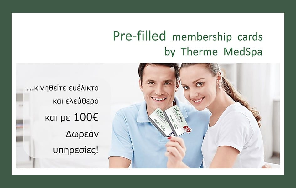 Pre-filled member card by Therme MedSpa και κινηθείτε ευέλικτα και ελεύθερα χωρίς δεσμεύσεις, απολαμβάνοντας τις υπηρεσίες μας και πολλά πολλά Δώρα!